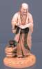 circa 1900, standing holding a lengthy scroll, the broad base with a lantern, red lacquer signature