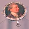 late 18th century, the young man wearing a brown jacket, set in a gilt metal frame with cut glass cabochons and blue glass backing