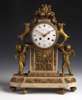 late 19th century, the lever movement by Dufaud of Paris, with gilt and enamel dial, the case of column form flanked by two gilt bronze armorini, on a chased and enamelled base with onyx platform