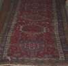 with seven medallions on a red ground, within a three patterned border, 272cm x 76cm (worn);