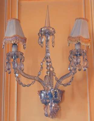 with the foregoing, two lights and a 'spike' finial to each (some droplets missing, adapted for electricity) (2)