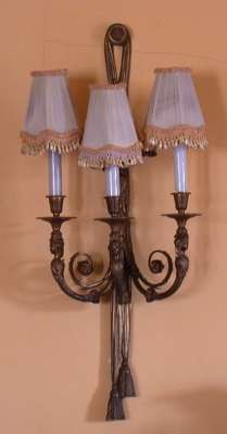 A pair of three branch gilt bronze wall lights