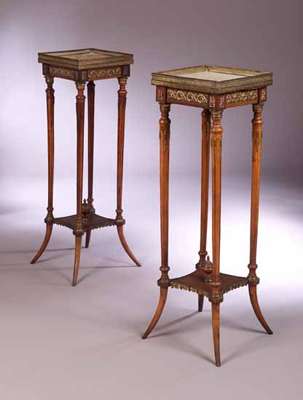circa 1860, with chased gilt brass mounts and gallery, marble tops (2)