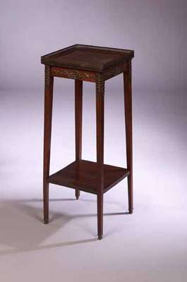 the kingwood and parquetry top with gilt bronze mounts and gallery, square tapering legs