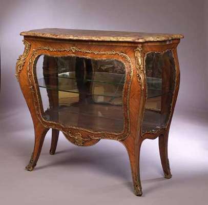 of bombe shape with gilt bronze mounts and rouge marble d'alep slab to the top