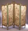in Louis XV style, the carved frame in eau de nil and gilt finish, with Chinese silk embroidered panels