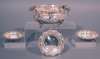 THE BOWL IS CONTINENTAL & IMPORT MARK FOR LONDON 1892, London, overmarked, with applied cherub heads and 'dogs head' ring handles, of four scroll feet (lacking ring handle) 20cm wide; and a set of three matching silver embossed bonbonnières, Sheffield, modern, maker's mark S.F. over W.S.