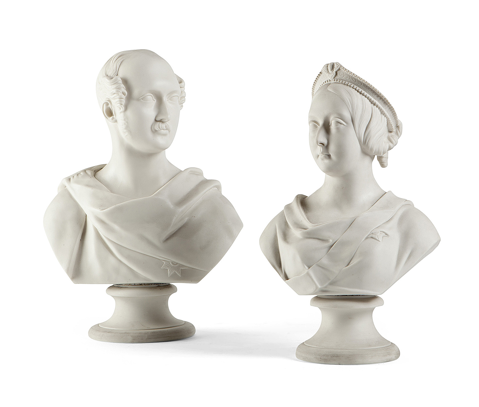 Victoria, 33.5cm (13.2in) high, Albert, 36cm (14.2in) high