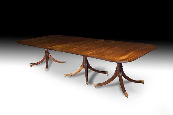 REGENCY STYLE MAHOGANY TRIPLE PEDESTAL DINING TABLE