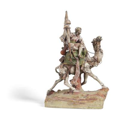 modelled as an Arab on camel back, raised on a naturalistic base, impressed marks