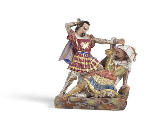 modelled as a knight and an Arab engaged in battle, raised on a naturalistic base