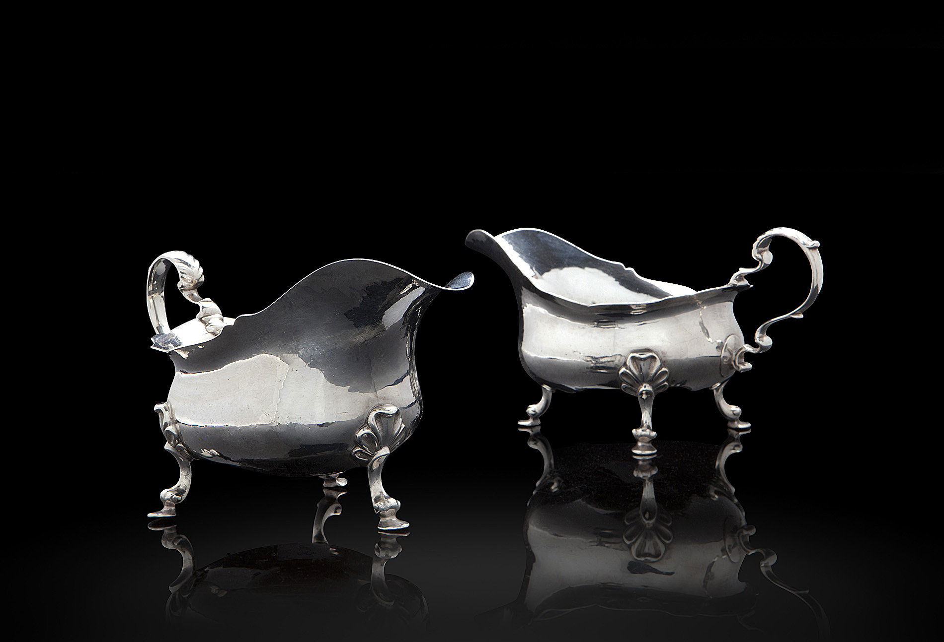 PAIR OF BRITANNIA STANDARD SILVER SAUCE BOATS