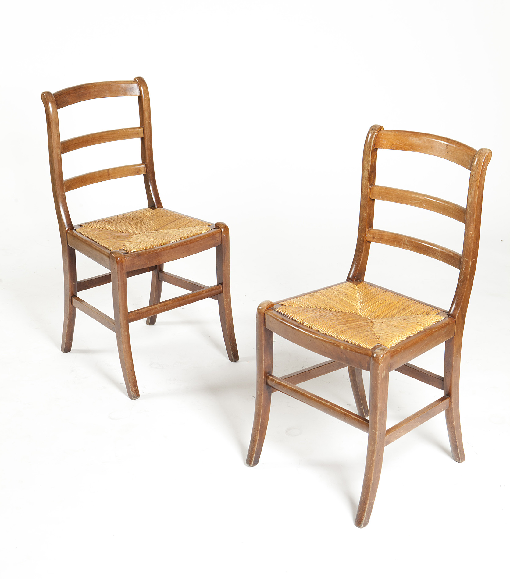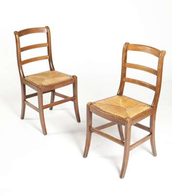 with ladder backs and rush seats, raised on slightly splayed legs (6)