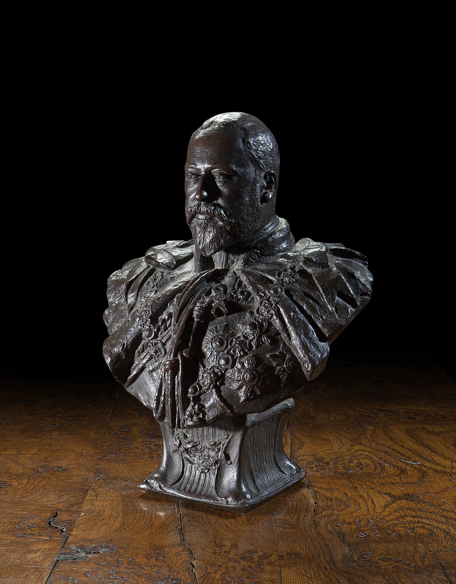 Bronze bust, signed and dated 1901, bears inscription ‘This is the second copy cast to the order of A.C. Garrick Esquire, the first having been cast for His Majesty/ Elkington & Co., London 1901'