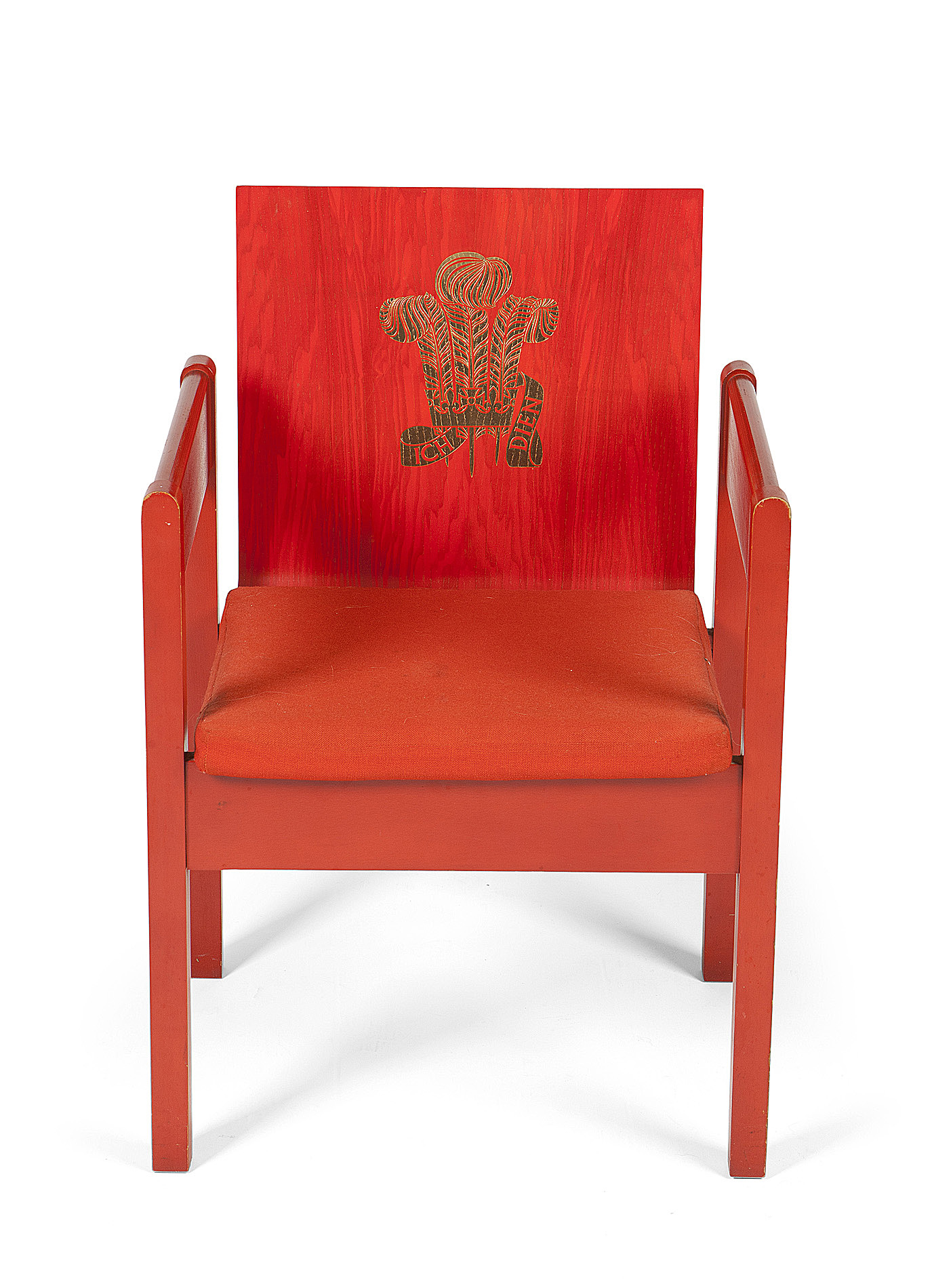 RED PAINTED OPEN ARMCHAIR FOR PRINCE CHARLES'S INVESTITURE AS PRINCE OF WALES