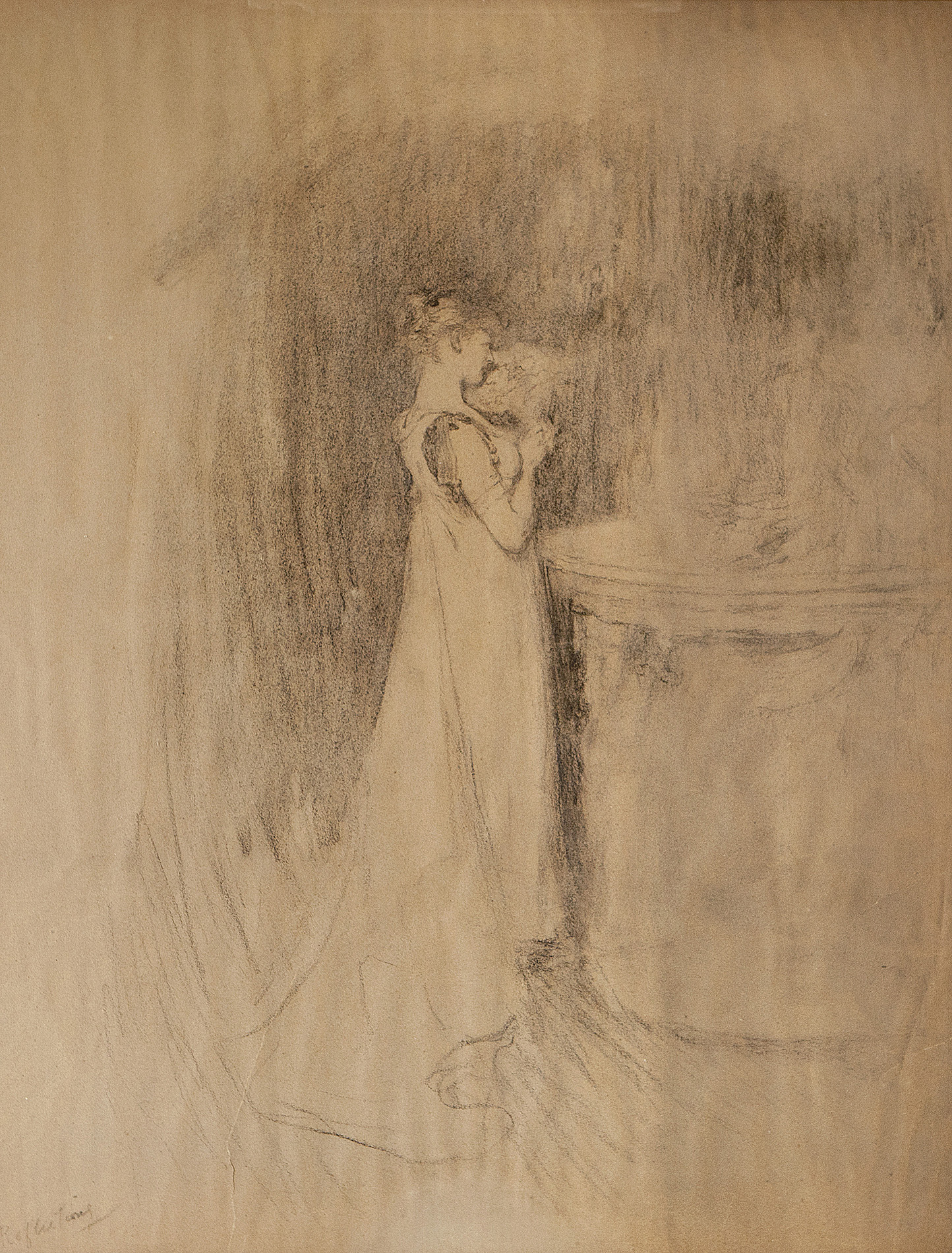 Inscribed, black chalk on buff paper, with chalk study for 'The Rivals' verso