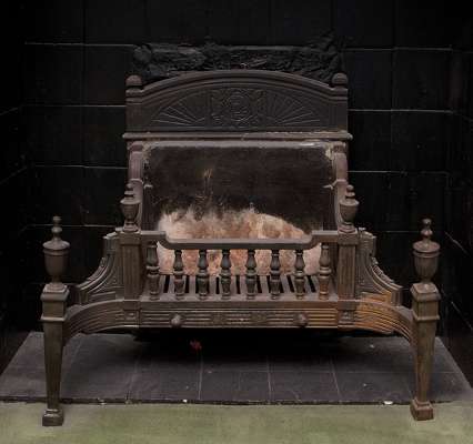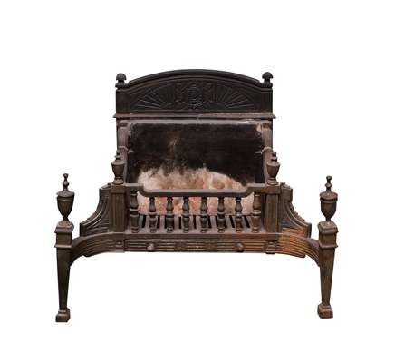 with outswept square tapering standards surmounted by vase finials with a foliate cast back-plate