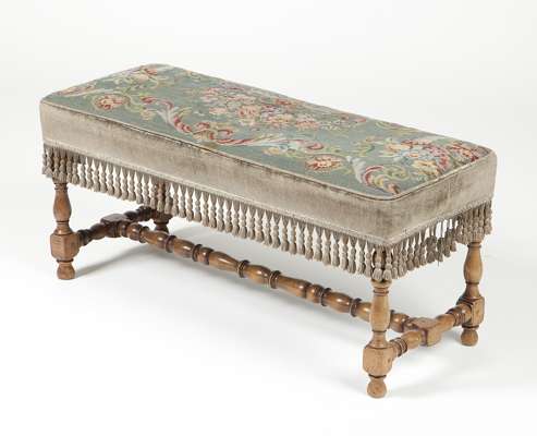 the seat with gros point needlework of a vase of flowers' on bobbin-turned supports united by conforming stretchers