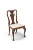 the waved top rail above a solid baluster splat, drop-in seat on shell-capped cabriole legs with pad feet