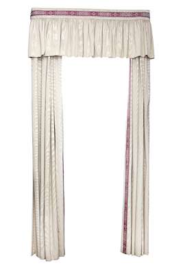 FOUR PAIRS OF LINED CREAM SILK CURTAINS AND PELMETS