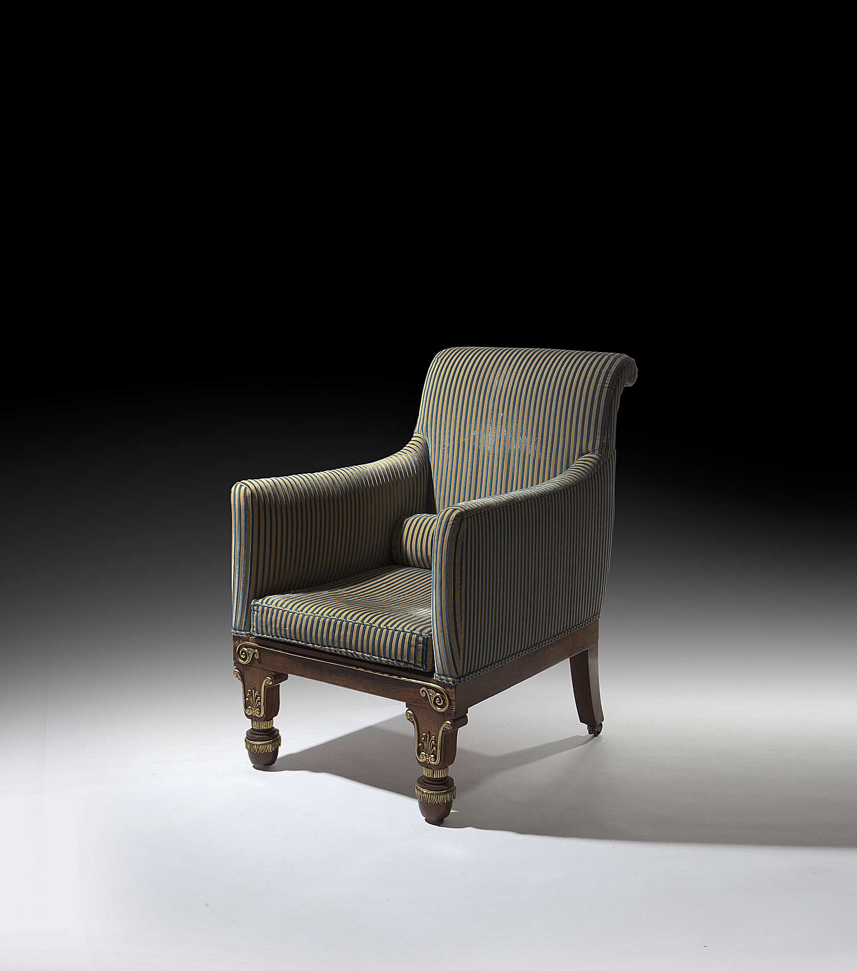 FINE GEORGE IV BRASS-MOUNTED AND UPHOLSTERED ROSEWOOD BERGERE
