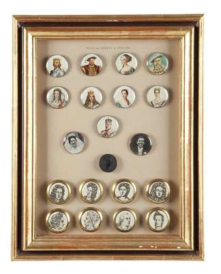 THIRTY-SIX ASSORTED GLASS AND ENAMEL PORTRAIT BUTTONS