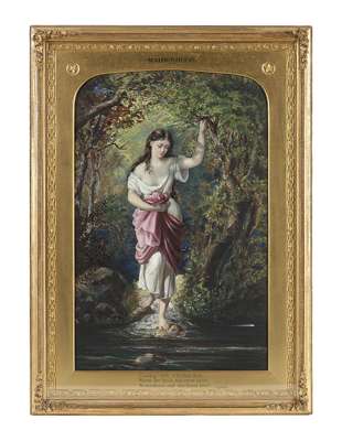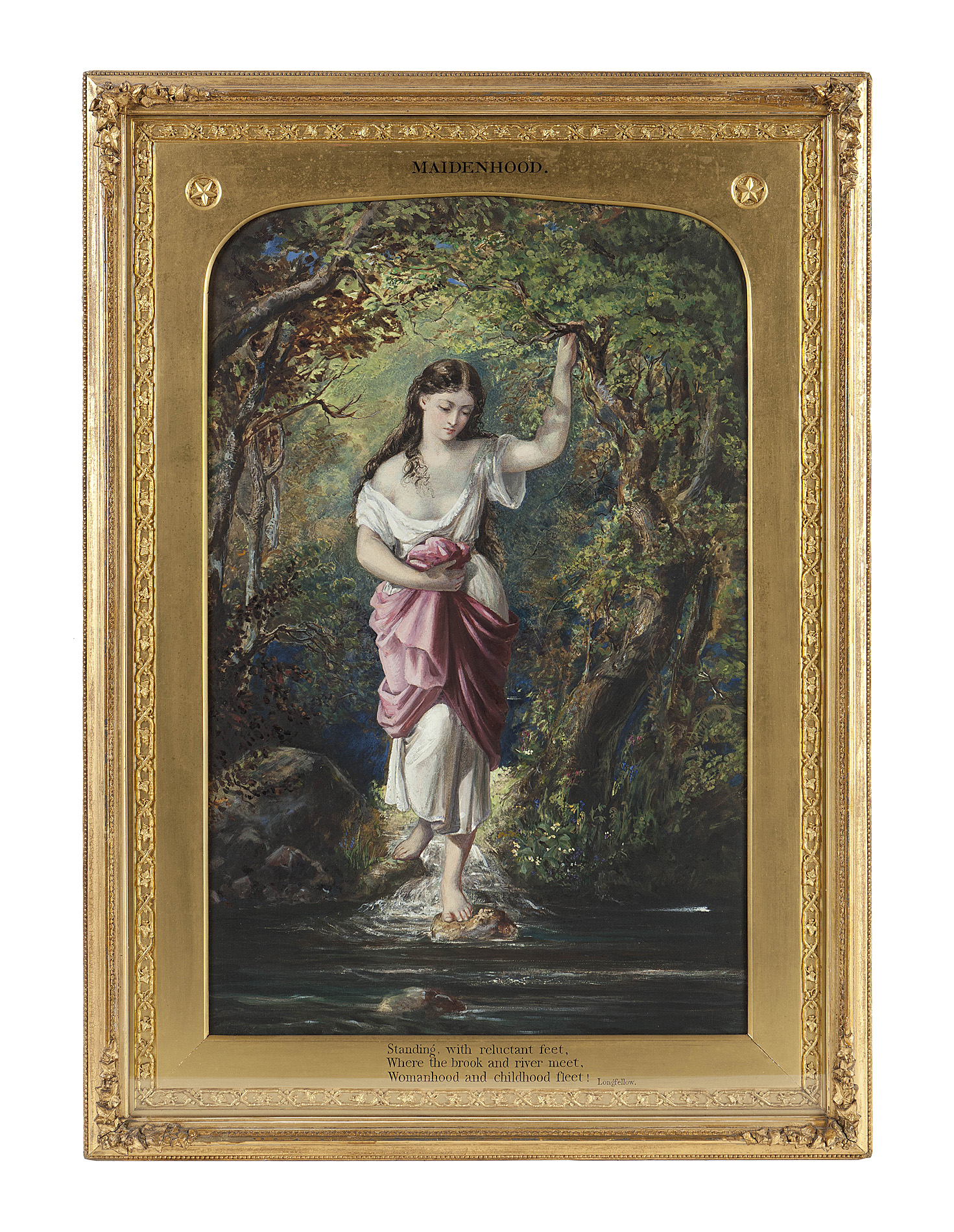 The present work was painted by Princess Louise for her mother, Queen Victoria, in honour of her birthday, May 24th, 1869. It was inspired by the following lines of Henry Wadsworth Longfellow's poem 'Maidenhood' which was included in his Ballads and Other Poems. "Standing with Reluctant Feet/Where the Brook and River Meet/Womanhood and Childhood Fleet!"