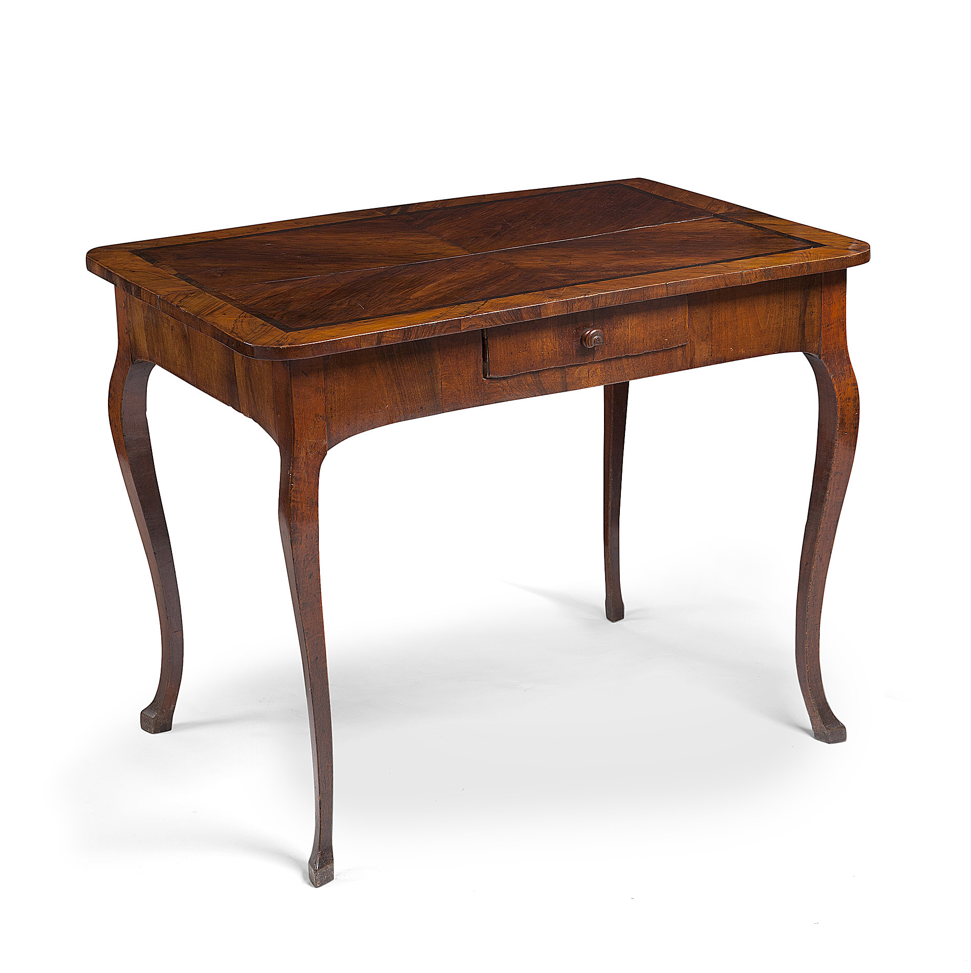 ITALIAN OLIVE WOOD AND WALNUT CROSSBANDED WRITING TABLE