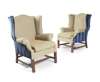 PAIR OF GEORGE III MAHOGANY AND UPHOLSTERED WING ARMCHAIRS