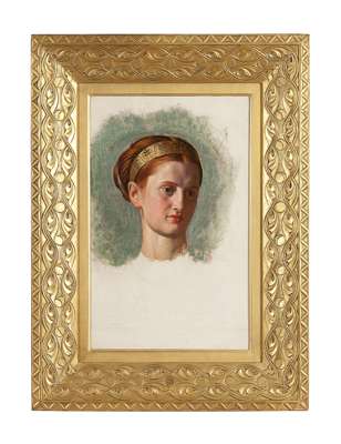 Oil on canvas, inscribed on torn label on stretcher at a later date by Edith Holman Hunt: '[Fo]r Slubby with [lo]ve from Edith H[olman Hunt] Study of […] by W H[olman Hunt] made […] Campden […]'