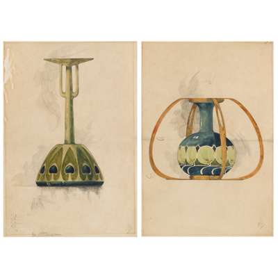 TWO ORIGINAL DESIGNS FOR MINTON SECESSIONIST VASES, CIRCA 1901