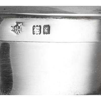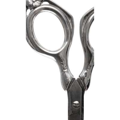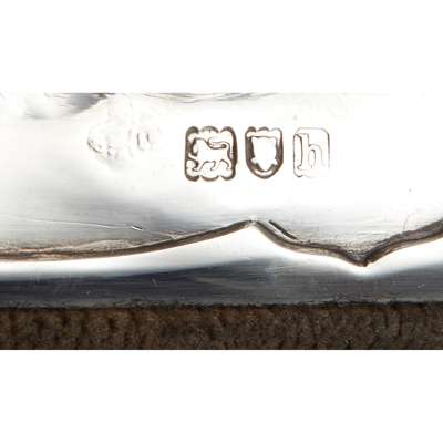 silver, in original box, comprising, TWO PILL BOXES, one hallmarked London 1902, the other with matching lid, hallmarked Birmingham 1902, each 2.4cm (3/4in) high; a BUFFER, hallmarked London 1903, 11.2cm (4 3/8in) long; a PAIR OF SCISSORS, the blade stamped SHEFFIELD/ 2, hallmarked London 1902, 9.8cm (4 7/8in) long; a PAIR OF NAIL SCISSORS, hallmarked London 1902, 9.8cm (4 7/8in) long; a NAIL BRUSH, handle hallmarked London 1902, head hallmarked Birmingham 1902, 8.7cm (3 3/8in) long; a CUTICLE TIP, terminal stamped STE*, hallmarked London 1902, 12cm (4 5/8in) long; and a NAIL FILE, terminal stamped STERLING, handle with partial hallmarks