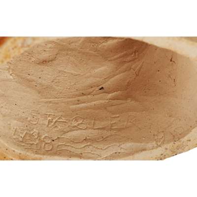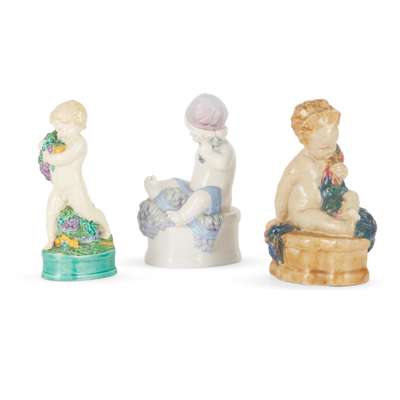 glazed stoneware, incised 'STABLER' above waves and '1912', impressed '18'; together with 'THE BUSTER GIRL' BY PHOEBE STABLER, glazed earthenware, impressed 'PHOEBE STABLER', printed 'ASHTEAD POTTERY' and 'DCM/ ASHTD', incised 'M 49' 17.5cm (6 7/8in) high; and ROYAL WORCESTER FIGURE OF PUTTI, modelled by Frederick Gertner to designs by John Wadsworth, printed mark 'Royal Worcester England', model '2694 Registrati...', 17.8cm (7in) high