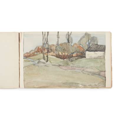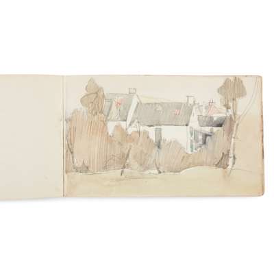 her own sketchbook, with 26 original pencil sketches and watercolour sketches, cloth binding