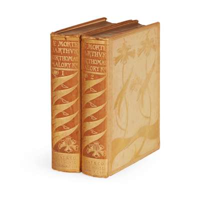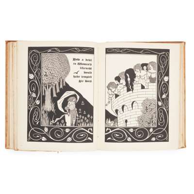 First edition, one of 1500 copies on ordinary paper, 2 volumes, 4to, original cream cloth, floral Art Nouveau design by Aubrey Beardsley gilt to spines and front covers, top edges gilt, others untrimmed, half-titles (each with limitation statement verso), photogravure frontispieces (on india paper, mounted as issued), 18 line-block plates (4 double-page), line-block text-illustrations, decorative borders, chapter-headings and tailpieces throughout, colophon leaf to each volume