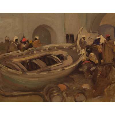 Provenance: Christie’s Scotland, 8 June 1995, lot 919 (as 'Figures by a Grounded Fishing Boat, Tangier, circa 1897' and sold with 'two others, similar')