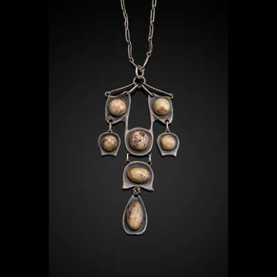 silver, set with semi-precious stone cabochons, stamped manufacturer's and artist's marks, '935' and 'DEPOSE'