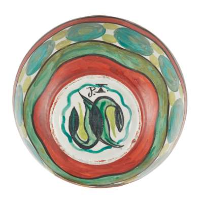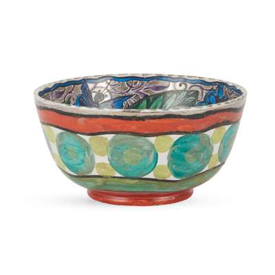 painted earthenware with lustre highlights, painted monogram and hourglass symbol