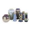 glazed stoneware, impressed manufacturer's marks, incised initials, 25.5cm (10in) high; together with a BESSIE NEWBURY VASE, glazed stoneware, impressed manufacturer's mark, incised initials, 14.5cm (5 3/4in) high; and FIVE FURTHER ROYAL DOULTON VASES, glazed stoneware, each with impressed manufacturer's mark, 26.5cm (10 1/2 in) high; 19.5cm (7 3/4in) high; three measuring 18.5cm 7 (3/8in) high; and 19cm (7 1/2in) high