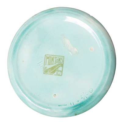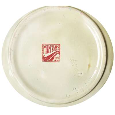 Note: Beyond their distinctive decoration, pieces included in the range can be identified by the Minton’s factory marks specially designed by Solon and Wadsworth. One mark contains the words ‘Mintons Ltd’ in Art Nouveau lettering, in which the ‘S’ exaggeratedly sweeps back and underneath. Another more rare mark found on pieces from 1901-1903, features ‘Mintons Ltd’ framed in a square border. These earlier Secessionist pieces are likely to have been the work of Solon; designs produced after 1905 are attributed to Wadsworth, after his appointment to art director that year. Today, the designs of both men are held in high regard, and in particular, their designs for Minton Secessionist Wares for Minton’s are widely considered a significant contribution to the British Art Nouveau style between 1890 and 1914.