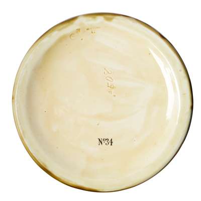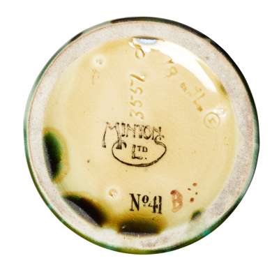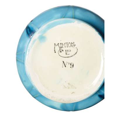 tube-lined and glazed earhenware, impressed 'MINTONS', printed '34', incised '3508', date cypher for 1907; together with another similar SECESSIONIST WARE VASE, 1906, printed 'MINTONS LTD.' and 'No. 35', 34.8cm (13 3/4in) high; a SMALLER VASE, printed 'MINTONS LTD.' and 'No. 9', 24cm (9 1/2in) high; a PAIR OF SMALL VASES, printed 'MINTONS LTD.' and 'No. 41', incised '3557', one with cypher for 1904 and the other for 1911, 17.2cm (6 3/4in) high; a PAIR OF CANDLEHOLDERS, printed 'MINTONS LTD' and one example printed 'No. 1', 10.5cm (4 1/8in) high; and a SMALL JARDINIÈRE, printed 'MINTONS LTD.', 'incised 3772, impressed 'MINTONS' and date cypher for 1911, 26.5cm (10 1/2in) wide
