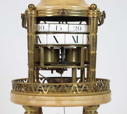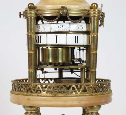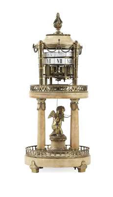 FRENCH ALABASTER AND GILT METAL MOUNTED CERCLES TOURNANTS CLOCK