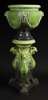 in green glaze, moulded with lion masks and laurel swags, the pedestal ending on a triform base with gryphon monopodia