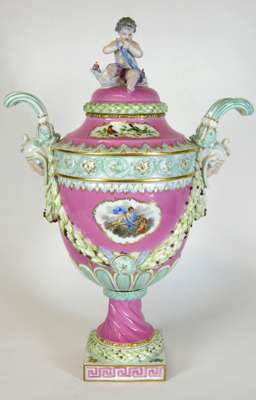 GOOD MEISSEN PORCELAIN PINK COVERED VASE