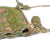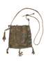 with silk and silver threads with a silk lining, depicting flowers growing on a trellis, with a drawstring cord top and tassel trimmings
