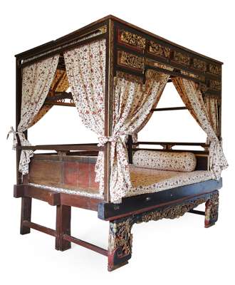 IMPRESSIVE CHINESE HARDWOOD AND PARCEL GILT MARRIAGE BED