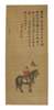 ink and colour on paper, depicting a warrior on horseback, calligraphy and seal marks