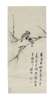 ink and wash on paper, depicting birds on a branch, calligraphy and seal marks