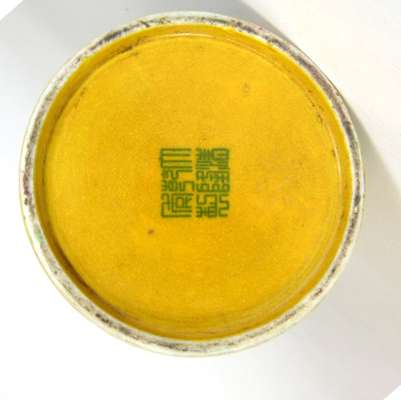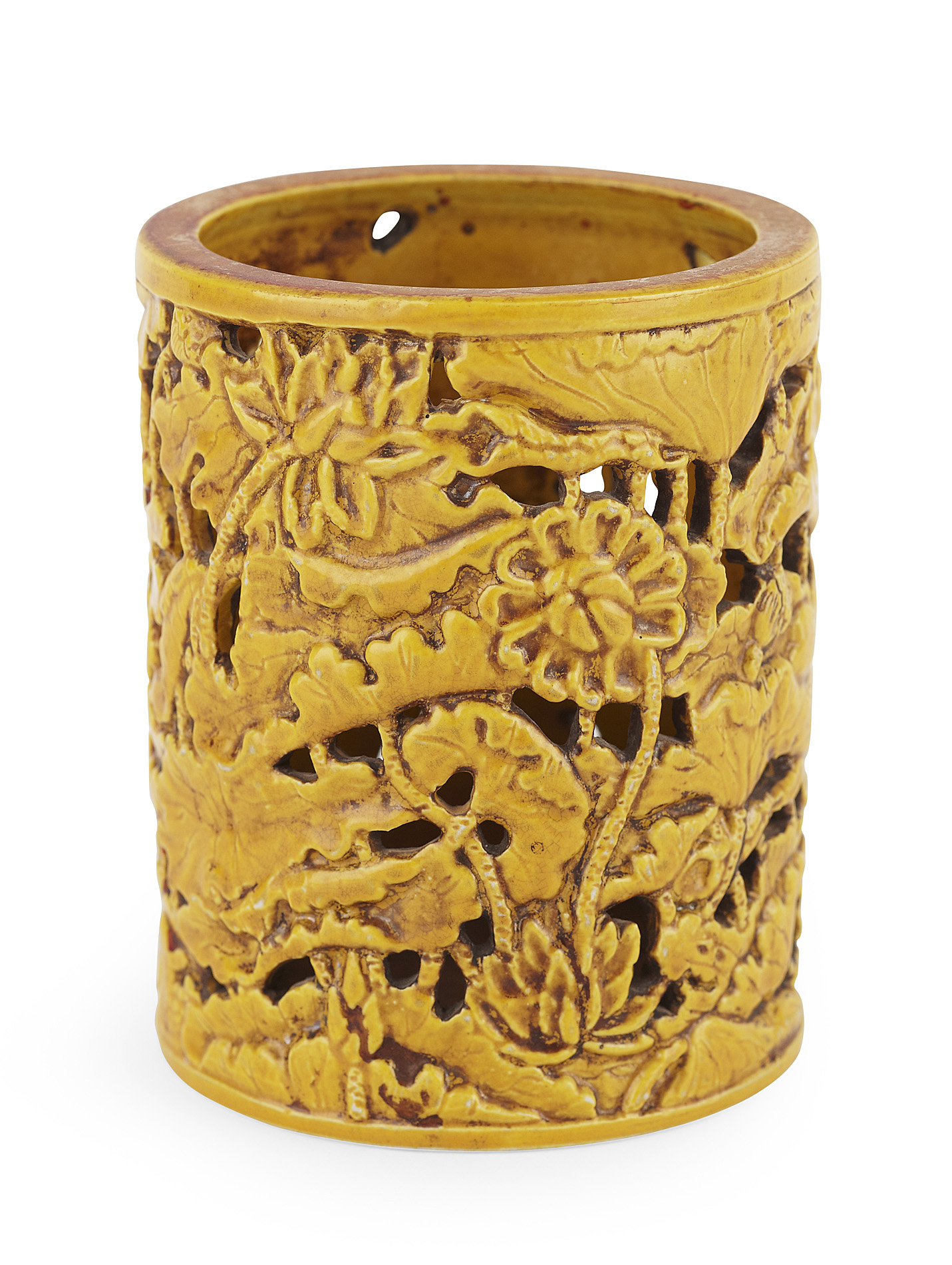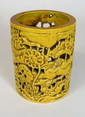 CHINESE PIERCED YELLOW GLAZE BRUSH POT