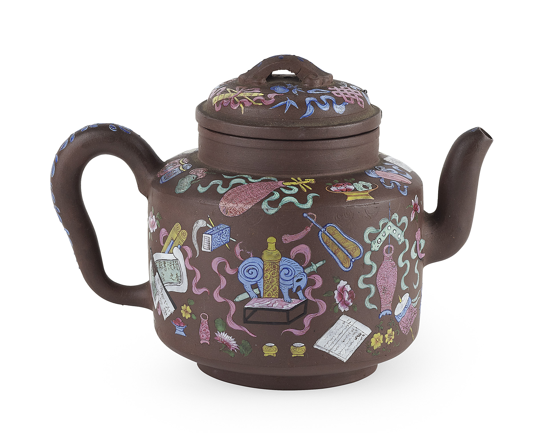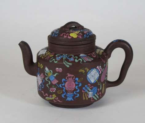 CHINESE ENAMELLED YIXING TEAPOT AND COVER